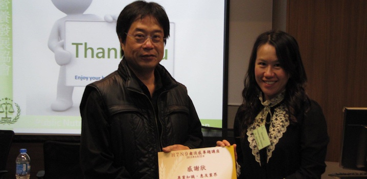 Dr Jenny Ngai shared her knowledge on H7N9 influenza with members of the 香港餐飲業稻苗學會.