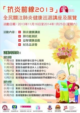 The 6th pneumonia community talk was held on 21 December 2013 at 香港復康會社區復康網絡新界威爾斯中心 with 60 participants.