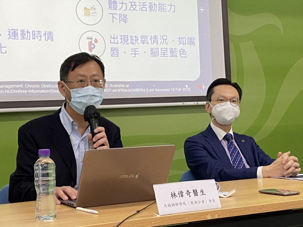 Dr Lam Wai Kei, Dr James Ho and Dr Grace Lam, the Presidents of our three respiratory societies, had attended the joint press conference with Community Rehabilitation Network (CRN) on 25 May 2022 to report the results of the Online COPD Survey and to introduce the new pamphlet for patients with COPD.