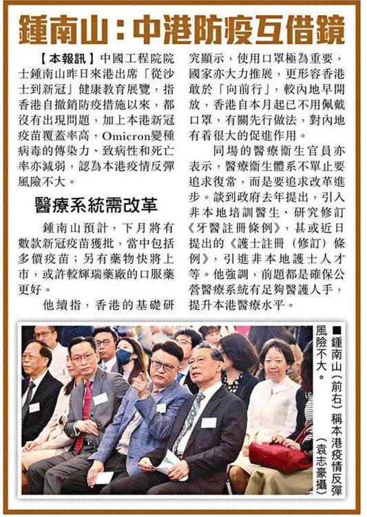 422023/03/11wenweipo online鍾南山:香港復常風險低 除罩對內地有促進作用