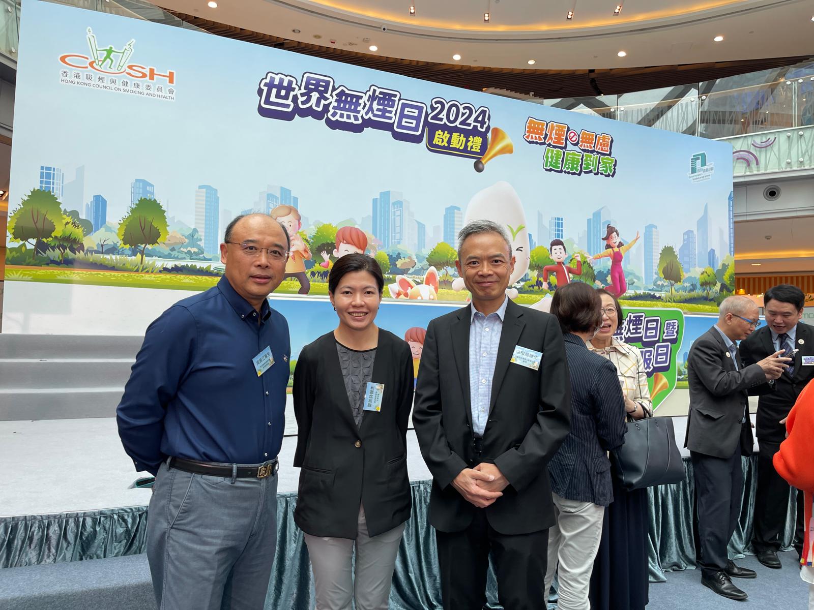 Dr Macy Lui, Dr YC Yeung and Dr CK Ng, representing the 3 Hong Kong respiratory societies and FMSHK, had attended the Smoke-free Publicity Programme for World No Tobacco Day 2024 – Kick-off Ceremony cum Carnival, at the Atrium, Metro City Plaza Central, Tseung Kwan O on 18 May 2024.