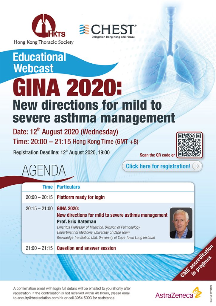 Home > Professional Education > Webinars and Workshop > 12 August 2020 – Educational Webcast: GINA 2020: New directions for mild to severe asthma management