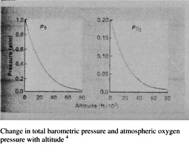 Although the proportion of atmospheric oxygen remains at 21% of the total barometric pressure (PB) at rising altitude, there is considerable fall in logarithmic manner in the partial pressure of atmospheric oxygen due to a corresponding fall of the total barometric pressure at altitude 4 as shown in figure 4.