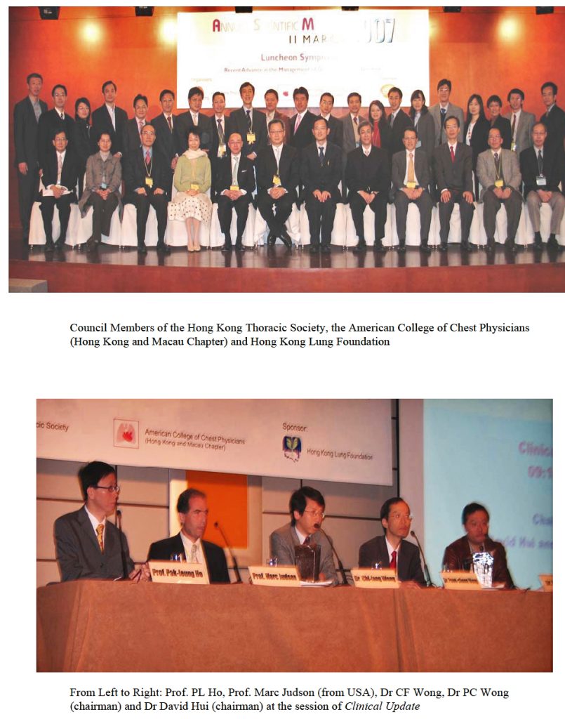 Similar to previous years, the Annual Scientific Meeting (ASM) co-organized by the Hong Kong Thoracic Society and the American Colleage of Chest Physicians (Hong Kong and Macau Chapter) was successfully held in March again this year.