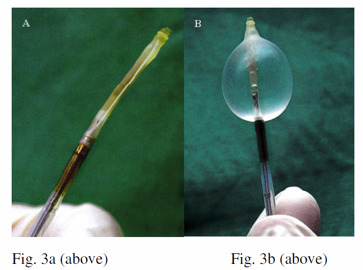 Hϋrter et al from Germany first demonstrated the possible utility of radial EBUS in the respiratory system for diagnostic purpose.1 He could identify 69/74 (93%) of all tumours, in which 19/26 (73%) were bronchoscopically invisible because of their peripheral locations. The progress of development however remained slow because of the hindrance of air-filled nature of respiratory system to ultrasound (US) signal. It was not until 1999 when Prof. Becker of the University of Heidelberg in Germany introduced his first prototype water-filled balloon incorporated radial EBUS to revolutionize its practical use in diagnostic and therapeutic bronchology (Fig. 3a & Fig. 3b).2 With improvement of ultrasound technology, the frequency of ultrasound signal has increased from 7.5 MHz (prototype) to 20-30 MHz with much better signal resolution for the practical use. External diameters of probes have also become slimmer from the original prototype to the current 1.4-1.8mm for more versatile peripheral applications.