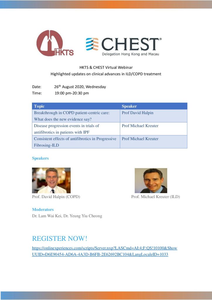 26 August 2020 – HKTS & CHEST Virtual Webinar: Highlighted updates on clinical advances in ILD/COPD treatment