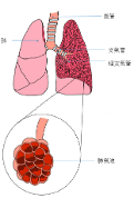 - 氣喘:氣喘是一種晚期的症狀,肺功能已跌至正常的4至5成(見圖二)。 慢性支氣管炎和痰液收窄氣管,阻塞血管流通, 同時間肺氣泡影響肺部吸入氧氣和排出二氧化碳, 引致呼吸困難。最初病者在運動時才覺氣喘, 但隨着肺功能不斷下降,喘氣便愈來愈易出現。如在日常的家居活動,或甚至靜止時也覺呼吸困難。