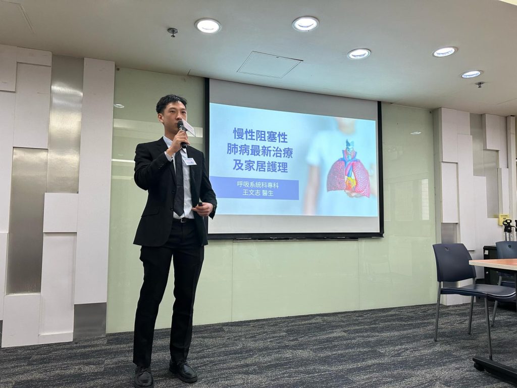 Dr. Jay Wong (王文志) from TKOH has represented HKTS and Chest Delegation HK & Macau to deliver to public information about general and pharmacological managment of COPD  at the workshop 慢性阻塞肺病新資及健肺運動工作坊 held on April 19, 2025, in collaboration with the HK Society for Rehabiliation and Hong Kong Health Care Alliance.