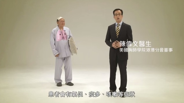 慢性阻塞性肺病簡稱慢阻肺病 (Chronic Obstructive Pulmonary Disease, COPD), 是一種不能逆轉並會持續惡化的呼吸道阻塞性肺病,患者氣管變得狹窄,氣體流通不暢順。 慢阻肺病包括了慢性支氣管炎和肺氣腫(見圖一) 。慢阻肺病病人的肺功能下跌比正常人快3至4倍(見圖二) , 因早期病徵不甚明顯,多數患者被斷症時他們的病情已達中期甚至晚期了。慢阻肺病是全球第3位殺手,此病亦是香港頭號殺手疾病之一。 根據醫院管理局統計, 慢阻肺病在全港的入院率每年高達超過30,000宗, 而每年亦記錄接近5000 宗死亡個案。